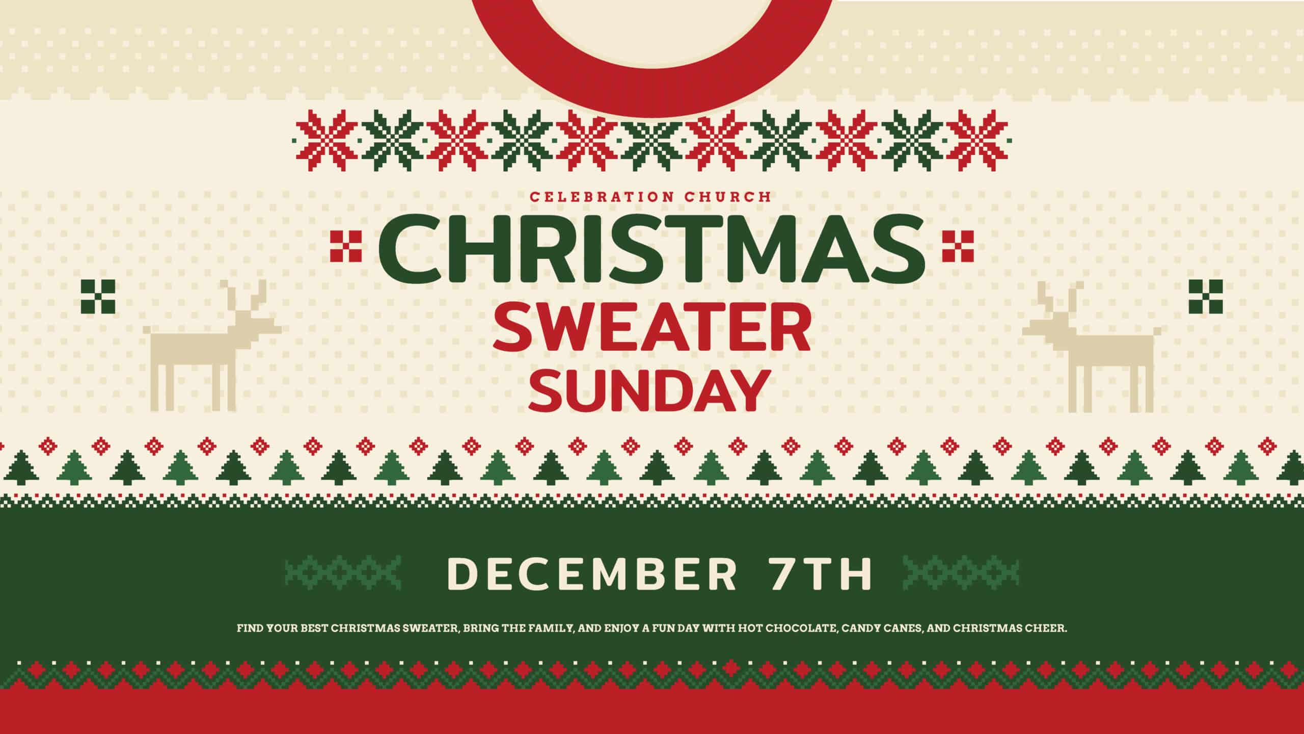 On December 7th, we are kicking off the season with Christmas Sweater Sunday. Wear your best Christmas sweater, bring the family, and enjoy hot chocolate, candy canes, and all the Christmas cheer.